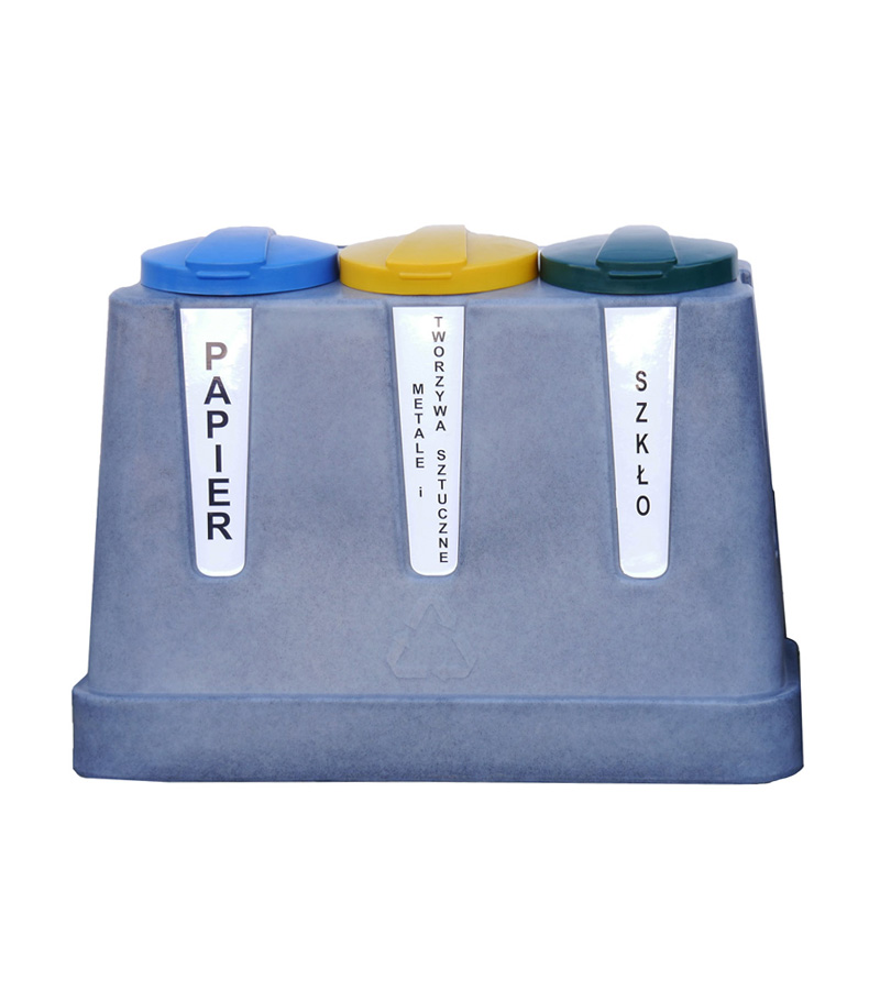 Każdy z trzech otworów pojemnika zaopatrzony jest w system utrzymujący torbę we właściwym miejscu i zapobiegający jej wpadaniu do środka pojemnika. Pojemniki wykonane są z polietylenu barwionego w masie, co pozwoliło wyeliminować koszty związane z regeneracją standardowych pojemników metalowych (odrdzewianie, malowanie, prostowanie uszkodzonych elementów). W celu opróżnienia pojemnika należy obejmę podtrzymującą torbę, a następnie odsunąć pojemnik od ściany.