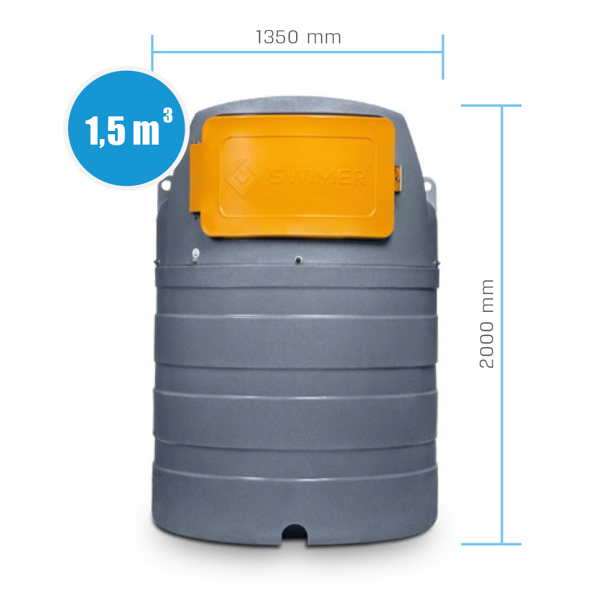 Zbiorniki SWIMER Tank ECO-Line to seria kompaktowych, dwupłaszczowych zbiorników z polietylenu do magazynowania oleju napędowego o pojemności 1500l, 2500l oraz 5000 litrów z zamykaną szafą dystrybucyjną. Idealnie nadają się do wykorzystania ich jako własnej ministacji paliw do tankowania pojazdów i maszyn z silnikami wysokoprężnymi.